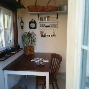 庭の手入れをしつつほっと一息☕ 小屋から眺める薔薇が一輪でも咲けば 至福の時間😊