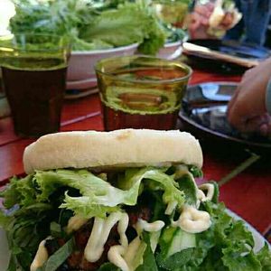 庭バラが一斉に咲き始めたので連投申し訳ございませんm(._.)m 狭い庭なのに、一日中庭をぶらぶら。この時期はランチもお庭で。我が家特製、炭火照り焼きバーガーです。