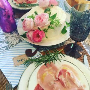 休日の朝食は 自分で育てている ミントやお花も一緒に飾り テーブルフォトを楽しみます💕