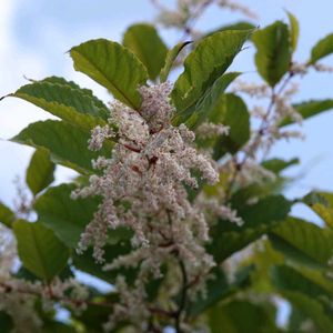イタドリ(虎杖)の雌花 薄紅色の花がふっさふさに咲いてました。 和名は、薬効から痛みを取るので「痛み取り」💊の説と、表皮から糸状の繊維をとるので「糸取り」🧵の説があるそうです。 漢字名(虎杖)は、茎が赤い虎模様があり、軽く丈夫な茎が杖に使われた事から「虎杖/こじょう」と漢字に付けられたとか🦯。 別名スカンポ(酸模) 春は、竹の子状の若芽の皮を剥いて食べられます🍴。(上高地)