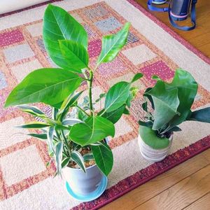 一時は葉っぱが次々に落ちてしまって毎日不安だったゴムノキ アルテシマ 子供の葉っぱ🌿も出てきて嬉しいな♡可愛いな♡