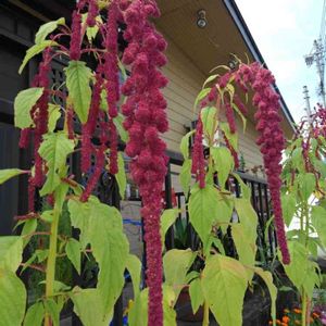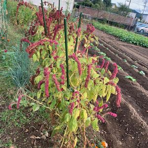 以前にもpostしました。 名前が分からず、こちらで教えて頂き「アマランサス」と判明! 前よりも赤くて、房が長くなっていました。 着物のかんざしの、房飾りみたいです💕