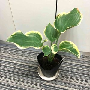 サガエちゃんの目覚ましい成長❣️ 毎日ぐんぐん育っています。 2000年にホスタオブザイヤーを受賞しています(アメリカ) 今は若葉なので、明るい緑に黄色の覆輪が鮮やかです。 徐々に地色は青みを帯びて、覆輪部分はクリームイエローになります。 波打つような葉脈も美しく、とても存在感がある大型のホスタです。 もう1種類の大型のホスタ「ブルーエンジェル」も、芽を出して成長中です。