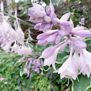 ホスタ サガエの花が3年目にして初めて開花しています🌸 蕾がいくつも集合していて 全部がイッキに咲かないの😂 だからどのタイミングがベストかわからないから今日とします🤣 透き通るほんのりピンクが美しい✨✨ 写真にはおさめられませんでしたが 花茎が90cmあるんですよ👀!!! コレも新たな発見でした🌱𓂃 𓈒𓏸