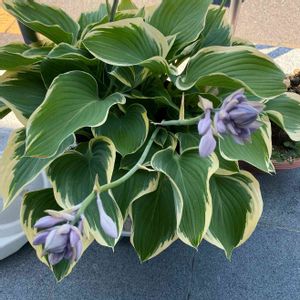 半日陰ギボウシ鉢植えコーナーより🌿✨ サガエ(寒河江)の花 ビョーンと長い40センチ程の花茎が伸びて お花が咲いています✨ 淡い薄紫のお花です😊