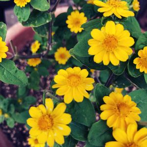 ぽかぽかなお昼 ベランダの寄せ植えです(*^▽^*) ✳︎パンジー ✳︎ビオラ ✳︎カルーナ ガーデンガールズ ✳︎ヘデラ 寄せ植えのご相談 もう少し何か植えた方が、可愛くなるのでしょうか? アリッサムとか隙間に入れたかったな(>_<) 初心者なので、寄せ植えの適量がわからずです どなたか教えてください(笑)