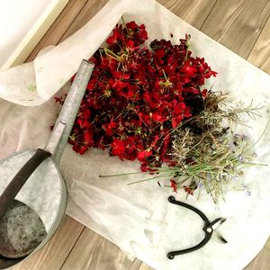 終わりかけ花ガラ摘みの花束 春の花の香り