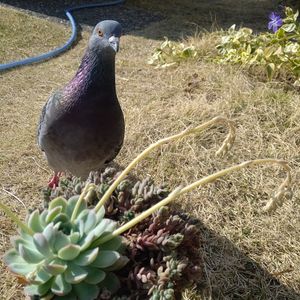 庭で この多肉ちゃん 暴れてるなぁ😓って 見てたら ハトぽっぽも 見にやってきました🐦️慣れてる~😆