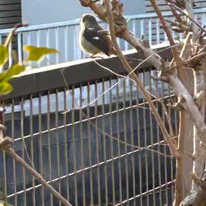 今朝、かわいい子を庭で見つけてしまった もしかしたらこれは、皆が言ってるジョビ子さん 大分前から、男の子が来ていたのは知っていたのだけど 雀とは違う かわいい目もと 恋の相手が見つかったのかな? 近づきたかったけれどこれが精一杯 また来てくれないかなぁ 暖かくなって、鳥たちもさかんにさえずっています