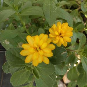 葉っぱの間からひょっこり👀 ボルトジンユの花みたいになってる( *´艸`)