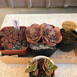 木工クラフト市でゲットした多肉さんたち。 可愛い鉢に植わってるハーブちゃん、育て方までしっかり聞いたのに、名前をド忘れしました💦 ハーブちゃん以外は、野ざらしOKみたいなので、我が家の仲間たちと一緒にします💪