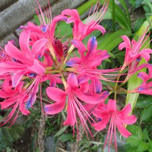 ピンクワールドへようこそ〜💓 こちらは、リコリス ウエキ一号(多分)、はっきりしないのは、前のうちで育てていた時から名札が飛んで、わからなくなっていたうえに、引っ越しでますますわけわかめになってしまったせいです😅💦 弁端にブルーを帯びているのが素敵ですね😍