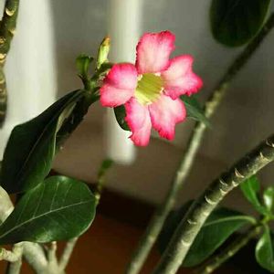 一度は葉っぱが抜け落ちて心配してたアデニウムでしたが、今朝一輪咲きました✨ 花芽もいっぱいついたのでこれからが楽しみです🎵