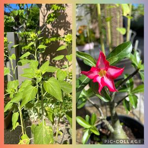 花が満開になりました🌞🌸 流石のアデニウムも、酷暑の炎天下では花が萎れ気味になっちゃいます💦なのでこの株はほぼ毎日日が暮れたらお水をあげてます。 pic 2の花がついてない子に関してはかなり適当に水やりしてます😆 (オベスムなのかアラビカムなのか分からない😅)