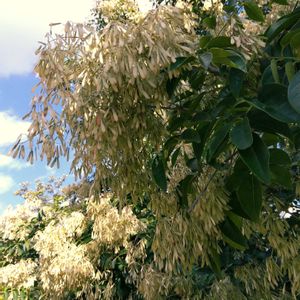 シマトネリコ モクセイ科トネリコ属 常緑高木 別名はタイワンシオジ オールのような長い羽をつけた実が垂れ下がっている。 雌雄異株なので、これは雌株である。 花期は6月頃 夏から秋にかけて実が熟す。 🏷️木曜日は木 に参加させていただきます。