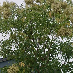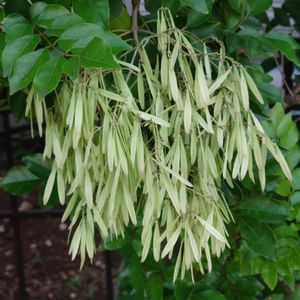 🍀シマトネリコの実🍀 神戸元町中華街、南京町の海榮門 (かいえいもん)は龍や鳳凰の彫刻が 豪華です そばに植えられたシマトネリコ❣️ 5月6月小さな花をつけたあと8月9月に たくさんの羽根のある実をつけます シマトネリコの果実は、翅果(しか)です 翅果とは、果皮の一部が羽のように発達 していて、風により飛散する果実の ことです ニレ、ハンノキ、トネリコ、カエデなどの 果実が翅果です