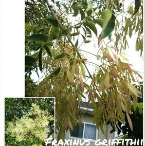 シネマトネリコの実(学名: Fraxinus griffithii)(英名: Griffith's ash)(タイワンシオジ) 詳細:2020年4.7 モクセイ科、トネリコ属 原産地:沖縄、台湾、中国 ⏺️左下=シネマトネリコの花。 右上=シネマトネリコの実 ⏺️翅果(しか)=翼果(よくか)ー果皮の一部が羽のように発達しており、風により飛散する果実。 ニレ、カエデ、ハンノキなども翅果。 ⏺️日本では、沖縄に自生する。 ⏺️半落葉中木。沖縄では常緑。 ⏺️関東以南の地域で庭木などとして植えられている。 ⏺️あまり、寒さには強くない。