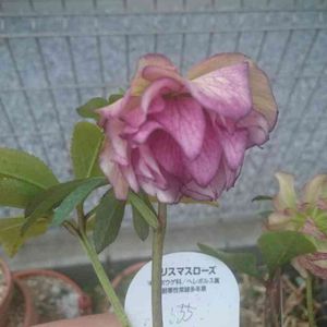 お庭のクリスマスローズの開花が待ちきれず お迎えしてしまいました😊 お手軽価格で八重咲きとだけ❗ お名前がわかりませんが…💞 お色も素敵だったので良いかな~(*´∀`)💖