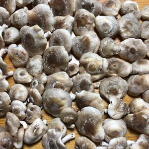 🍄原木椎茸🍄 もう小さいのばかりなのかなぁ〜と思ったら大きくなってました🎵 今迄1番右の一時倒れてたのが、沢山採れました。 今度は別のがが沢山生えてる~🎵 桜は、今回無し。 真ん中の太いのは生えないし、上に変なグチャグチャチビキノコが(´θ`llll) もうどかそうかと思ったら下の方に赤ちゃんシイタケが〜❣️👶✨✨ 上のグチャグチャチキノコは随分前に生えてきました。 ナニコレ(¬_¬)💦 調べると瓦茸というものらしい😳 白色腐朽菌で、コンクリでいう中の鉄筋同士を結ぶ番線(針金)の役目らしい。 それが無くなるとグズグスになってしまう。(湿気ありすぎたようだ?) 椎茸栽培ではそこから出てこなくなるので害菌ですが、多糖類のβーグルカンを多く含み免疫力を高める効果があるそうです‼️ カワラタケから抗がん剤クレスチンが作られてるそうです❣️ 免疫力を高めるために、煎じて飲めるって😳 ⭐️参考にネットから 乾燥させたカワラタケをはさみで小さく切って煎じます。 煎じ液は苦みがなく飲みやすいそうです。 1,カワラタケ煎じ液の作り方 「カワラタケ療法と食事療法」より (1)3日分一度に作る場合 ヤカンにカワラタケ50gと水4ℓを入れて、約1時間煎じる。煎じ液は約2,4ℓ位できる。この 液をガーゼ等で滓を濾して3日に分けて服用する。煎じ液は必ず冷蔵庫へ入れて保管す る。煎じ液が4日目まで残っても、腐敗して酸っぱくなっているので飲用しない。 (2)毎日煎じる場合 カワラタケ20g、水1,5ℓをヤカンに入れて約1時間煎じる。ガーゼを使ってカワラタケの滓 を取り除いて、朝、目覚めたとき1回、朝食前2回目、昼食前3回目、夕食前4回目、就寝 前5回目、1日5回服用する。カワラタケの臭みで飲みにくい場合は砂糖かハチミツを加え レモン汁を適当に混ぜると飲みやすくなる。 ほ、ほぉ〜😙