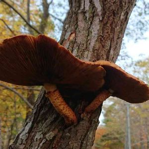 この木この先は、崖で十数m下、川が流れています。 無事キノコが採れたら、一度茹で溢して、水分取ってからバター焼きにして醤油を垂らして食べます🎵