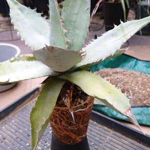 アガベ チタノタブルー fromホームセンター 偶然立ち寄ったホームセンターで見つけたチタノタブルー。 チビ株から放たれるあまりの禍々しさについお持ち帰り。 鋸歯とか剥がれてるけど、それでもわかる禍々しさ。 ちまたで人気のチタノタと比べれば全然ダメかもしれないけど、自分の中では最高の子です。