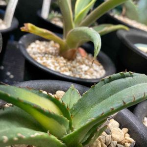 こちらが新しく家族になりましたアガベちゃんです。 チタノタFO-076系の選抜個体でナーセリーオリジナル品種「バラクーダ」 左下が親株(SNS掲載許可あり)で将来性アリ🤤 以後お見知り置き下さい🤲笑