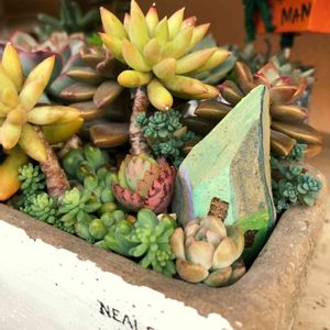 雨にも風にも負けずに寄せ植えられてます。先週の風雨に煽られ、子持ち蓮華が根付く前に吹き飛ばされたり、タグが吹き飛ばされたり、棚からビニールポットのままの多肉が通路に転がったりと色々ありました。