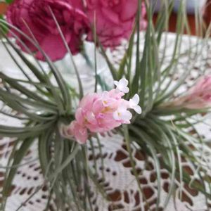 【コットンキャンディ】 花のある子は最近うちに来た子。 花のない子は去年うちに来た子。 先住民は日に当てすぎて だいぶ美白になったけど 元気だし、子が2ついる。 かわええ。 育て方 https://lovegreen.net/library/tillandsia/p103017/