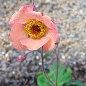 こんにちは♪ ゲウム・マイタイ バラ科 耐寒性多年草 別名(ダイコンソウ) 初お迎えの花 花径3cmほどの可愛い花を1輪だけ咲かせました💕 アプリコット色で咲き進むとピンクを帯びるそうで、これから大株になって楽しませてくれる事を期待してます(✿^‿^)