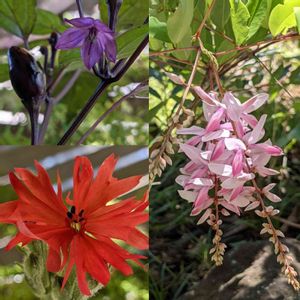 ニワフジ(マメ科)コマツナギ属 庭のあちこちから、顔を出して咲いています♡ 観賞用トウガラシ(ナス科) トウガラシ属 センノウゲ(ナデシコ科) センノウ属 左pic上下…花友さんから春に、頂きました(*^^*)v🎶 時々水切れをさせてしまったり、風で倒れたり、葉っぱを虫に食べられたりと…心配しましたけれど(^^ゞ 何とか咲いてくれました💜❤ 嬉しいです(*^^*)🎶 花友さんありがとう💕