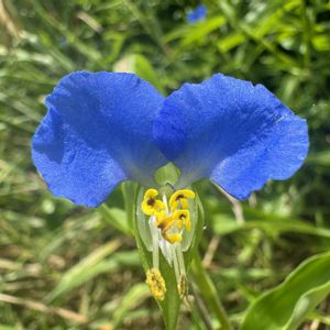 ツユクサが咲いてます💙。 ☀️暑さのせいで 昼前に萎みます。 庭に生える🌱雑草で散々刈りました😂。 ② 毎日 我が家に通勤するヒメクロホウジャク