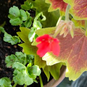 おはようございます。(*,,•ᴗ•,,) 今日は、投稿2回目です。 すんなり入りません! 玄関のモミジ葉ゼラニウム! お花が咲きました。🥰 残ったのは、この子だけです。 大事にします。😊 今日も、穏やかな日になりますように!🥰 ( *ˊᗜˋ)ノꕤ*.゚❤️🌼🎶💗🌼🎶