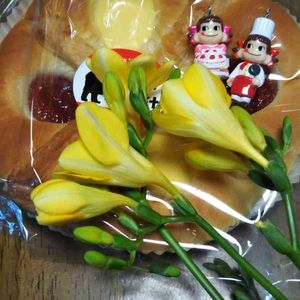 おはようございます。 (*´꒳`*) 🏷️ペコちゃん祭り🏷️ 2枚目! 参加で〜す。🥰 美味しそうな🍞を見つけました。🍞😋🎶 💛色のフリージアさんと一緒に! 今日は、天気が悪い! 😹💦 でも、ペコちゃん祭りだから!😸🎶😸🎶 ٩(๑•o•๑)وᶠⁱᴳʰᵀᵎᵎ⚑⁎∗ 😊🙂😄