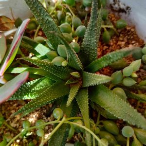 こんにちは(*,,•ᴗ•,,) 今日は、🌞11℃! 🏷️つぶつぶの日🏷️参加させて下さいね。😊 多肉のケーキ🎂鉢から、はみ出たグリーンネックレスです。 パンダ🐼鉢に、植え替えました。🥰 野菜のお返しに、プレゼント🎁 しましたよ。🥰 (´∀`*)ウフフ