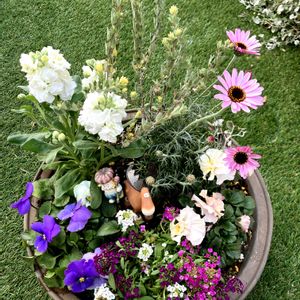 寄せ植えの模様替え その① 長らく頑張ってくれた紫のトレニアさんがいよいよめげてきて… ビオラオセロブルーさん&ラビット咲きビオラバニーイヤーさんと交代です オセロブルーさんはお値打ちコーナーからのお迎え 一度お店に切り戻しされたみたいで今はお花咲いてませんが、また咲いてくれることを願ってます その②に続く…