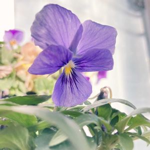 朝は天気が良さそう〜☀️ 今朝のビオラ✨ オセロブルーの後ろ姿💜