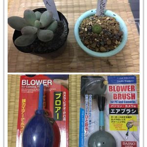 連投② 今日迎えた多肉 星美人とリトープス 星美人、このシリーズは好きだね✨ 色々あるもんね。⁇美人シリーズ😍 そうそう 下のアイテムも今日買ってきました。 エアーで飛ばしたり掃除したりするのは このサイズがちょうど良いかな👍 ブラシ付きの方はブラシ部分外せるから使い勝手はいいよ。 リトープスは小さい苗だけど小さい割れ目 まもなく覚醒する感じが好きでお迎えしました😌