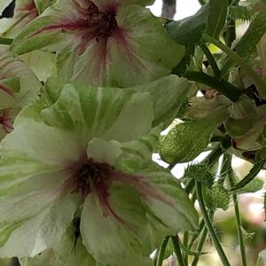 戸川公園の八重桜、御衣黄桜、ウコン桜、前回投稿してから一週間くらい経ち、八重桜は満開🌸 御衣黄桜とウコン桜は花の真ん中に赤い差し色が...☺️ 可愛いらしくなりました💕