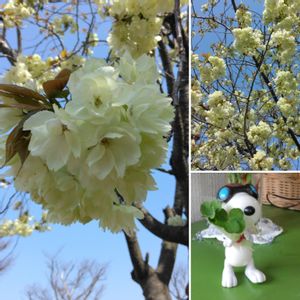 ウコン桜(鬱金桜)が 咲き始めました。うっすらクリーム色が少しずつ赤みがかり、まるで御酒を召し上がったような綺麗な色の変化も楽しみです。 🏷️毎月2日はスヌーピーの日 孫と捜した四つ葉のクローバー🍀皆様のお幸せを願って🍀💕