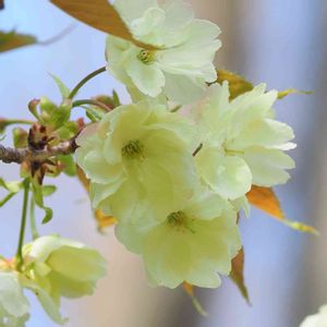 公園の鬱金桜が咲いてきました。 今はうっすら黄緑色です。