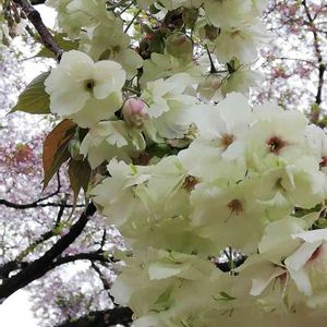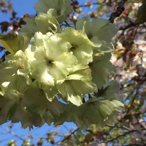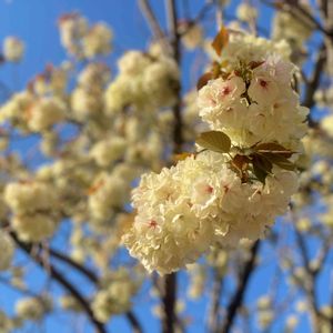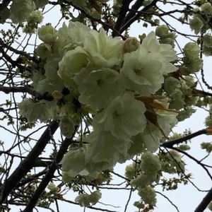 🍀鬱金桜🍀 鬱金桜(ウコンザクラ)も開花スタート🌸 薄黄緑色の花をつける珍しい桜ですよね😄 『美人桜』とも言われるそうです💕💕