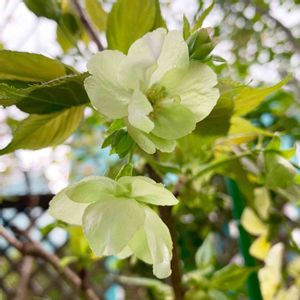 淡い黄緑色の桜💛💚鬱金(うこん)の桜💛💛💛 我が家の前のお宅の桜😊鬱金の桜が咲き始めました🤗 蕾は淡いピンク色💕開くと薄絹の様な薄萌黄色💛💚💛💚 京都伏見の"黄桜酒造"の創業者の方は🍶この桜を愛し🌸清酒"黄桜"を販売したそうで す🤗
