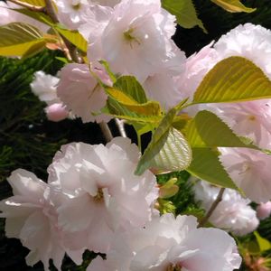 鬱金桜 咲き始めは萌黄色で、ウコンの根で染めたような色 次第に白くなり、その後中心から桃色に変化していく 大輪の八重咲きの花びらはふわふわして優しい雰囲気♡ॢ*‧˚ ブラウンがかった若葉も美しく🤎 夏は明るいグリーン🍃 秋には紅葉する🍂 もぉ完璧な美人桜です💮💮💮🌸🌸🌸 昨年苗を地植えしたばかり まだ小さいけど少し咲いてくれたんです( ´ᵕ`* )❤︎