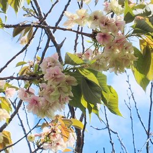 おはようございます😃 ソメイヨシノのピークは過ぎました。 今、遅めの開花の桜が咲いています。 これは鬱金桜でしょうか。🤔 御衣黄桜に比べると優しい色合いの黄色い桜です。 若葉の色と相まって、いい雰囲気です。😊 若はと一緒に咲く桜の花もいいものです。 今年はヤマザクラがソメイヨシノと一緒に開花してしまいました。 今はもう葉桜です。😅