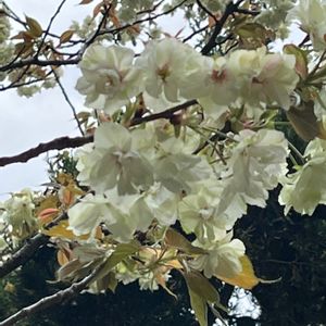 おはようございます♪ 新宿御苑の散策 💛鬱金桜💛 バラ科 サクラ属 オオシマザクラ系の「サトザクラ」 咲き始めは淡黄緑色も咲き進むと白っぽく全体がピンク色へと変わっていきます