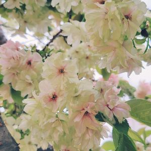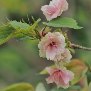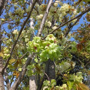 伊勢崎市 華蔵寺公園 水生植物園 御衣黄桜同様 淡い黄緑色の八重桜 別名「美人桜」といい 幸せを呼ぶ桜と言われているのだそう 御衣黄桜は花びらに 濃い緑色の絞りが入っていて 鬱金桜は絞りが無いのが 見分けるポイントらしい 🏷元気な月曜日 🏷月曜日はビタミンカラー 参加させていただきます🎶