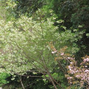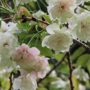 松前桜のお隣り… 今朝の鬱金桜です 📝 オオシマザクラを基に生まれた 日本原産の栽培品種のサトザク ラ群の一つ 別名…浅黄