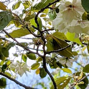 もう一枚投稿します✨ 鬱金桜✨ 右近桜、黄桜 ウコンザクラ オオシマザクラ系のサトザクラであり 江戸中期以前に人の手によって作られた 品種と考えられている 花弁が香辛料で知られる ウコン(鬱金)に似た萌黄色になることから ウコンザクラと名付けられた 黄色い花を咲かせる唯一のサクラであり 清酒「黄桜」はこの花にちなむ 金運アップのパワースポットとして知られる 昇仙峡の金櫻神社は 本種の黄色い花を金色に見立てて御神木としている 開花は4月中旬から5月上旬で 関山カンザンや普賢象といった 代表的なサトザクラよりは少しだけ遅れて咲く 花の直径は3.5~4センチほどで 10~20枚の花弁が重なり合う八重咲きとなる 咲き始めは文字どおりのウコン色 あるいは薄緑色だが、すぐに白っぽくなり 最後は中心部からピンク色に染まっていく このため観察の時期や個体によっては見分けにくい とのこと☺️ 今日は本当に暖かい一日でした✨ 午前の慌ただしい仕事の疲れも 吹き飛ぶくらいの 眩しい光景でした✨ 八重の桜があちらこちらで満開🌸となり みたかった黄緑色の桜💛💚 の美しさに圧倒されました✨ もうピンクの縦縞模様が入っていましたが 木全体が淡い黄緑色に染まって とても美しい景色でした✨ 桜を目の前にしながら いただいた甘い物の美味しいこと☺️ 心もお腹まで満たされて 癒しの時間をありがとうございました✨ 🌸🌸🌸