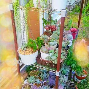 ますます賑やかな多肉棚になりました( *´艸`)✨✨ ごちゃごちゃしてるのはスルーして(笑)(ФωФ) えみちん……片付け苦手なのv( ̄Д ̄)v