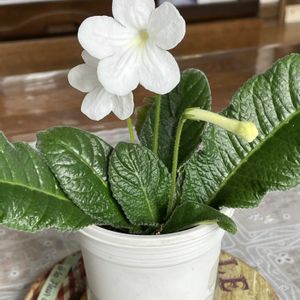 こんにちは☀️ 昨年10月に葉挿しした ストレプトカーパスが咲いてくれました❗️ 清楚で可愛いです。